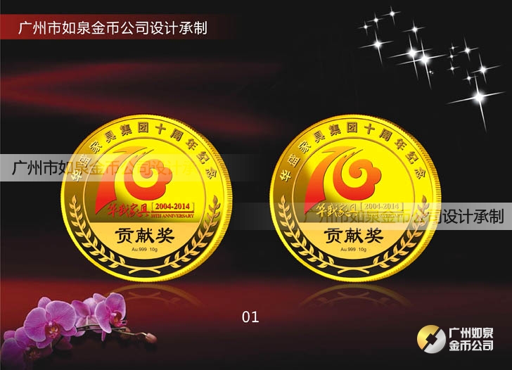 中山華盛公司周年慶定制純金紀念幣鑲水晶