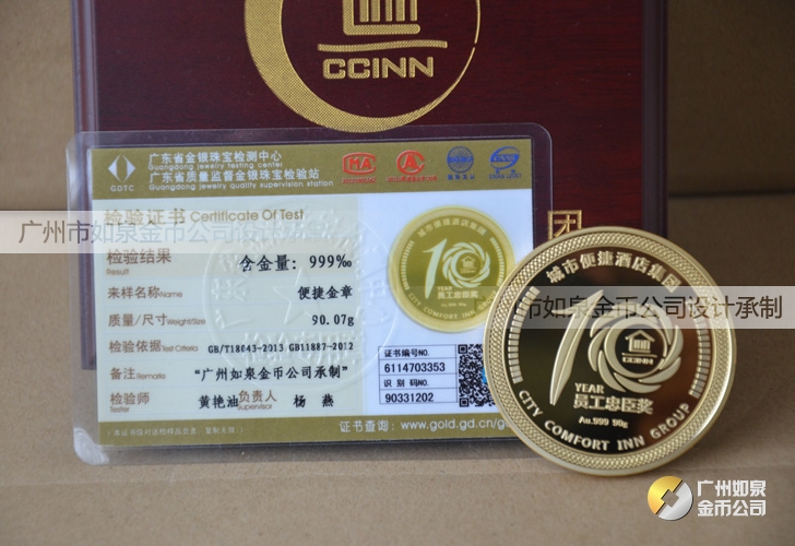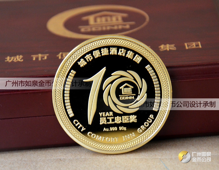 制作城市便捷酒店工作十年以上優秀員工紀念金牌