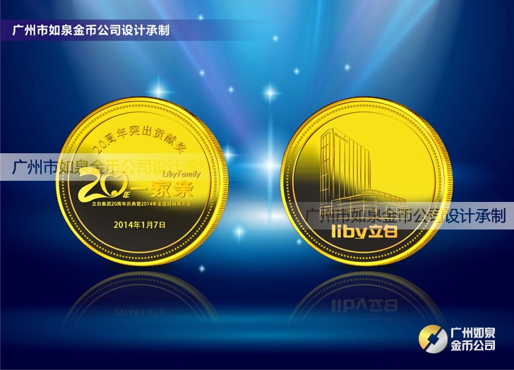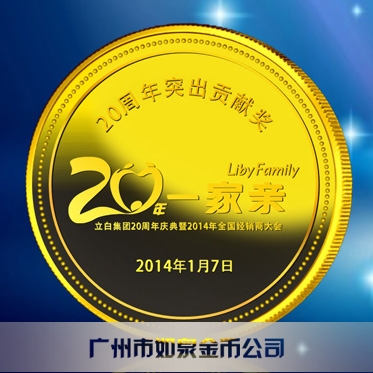 定制廣州立白集團(tuán)20周年定制純金紀(jì)念幣、制作純金紀(jì)念章