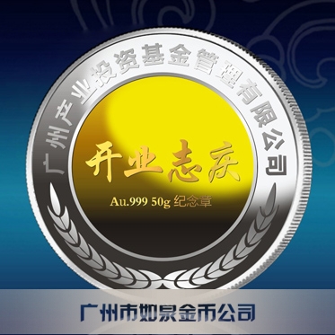 廣州產(chǎn)業(yè)基金定制純銀鑲金紀(jì)念幣制作銀鑲金紀(jì)念幣
