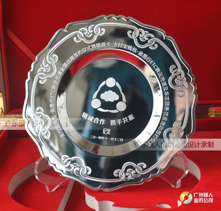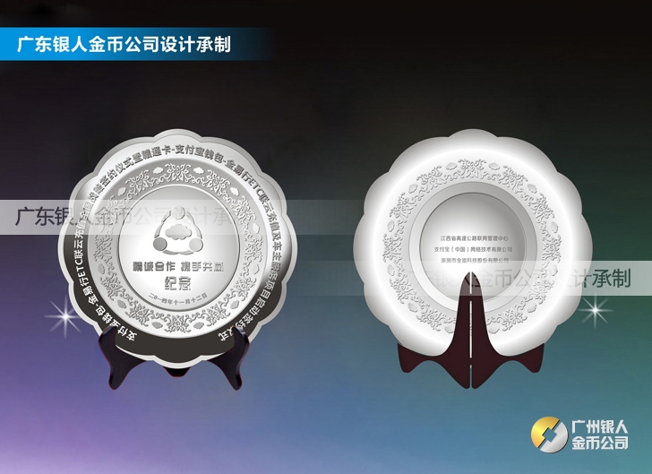 定做熱烈慶祝深圳金溢科技與支付寶達成ETC戰略合作伙伴純銀紀念盤制作