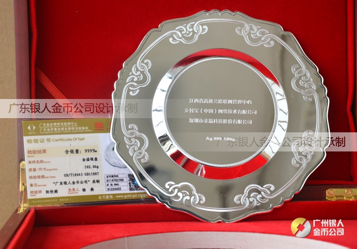 訂做深圳金溢科技公司純金銀紀念金銀盤訂做