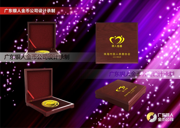 珠海麗人慈善會成立周年慶典定制鑲金銀紀念幣定制、純銀鑲金銀紀念幣定制