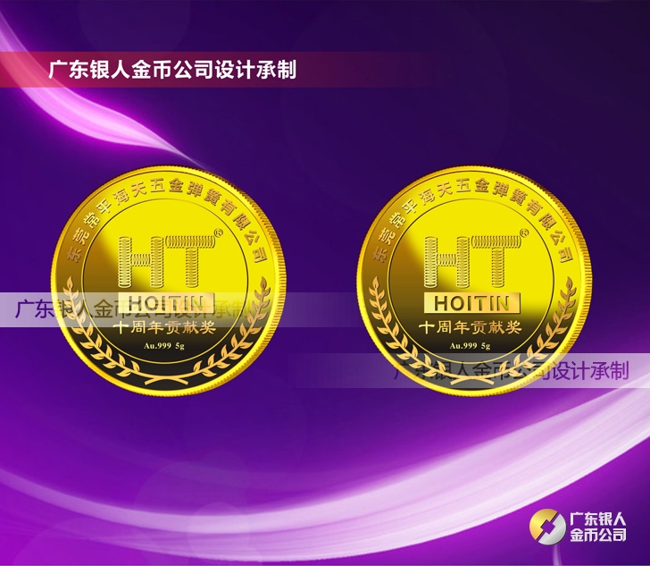 2015年1月:東莞海天五金廠慶十周年獎勵員工純金幣定制