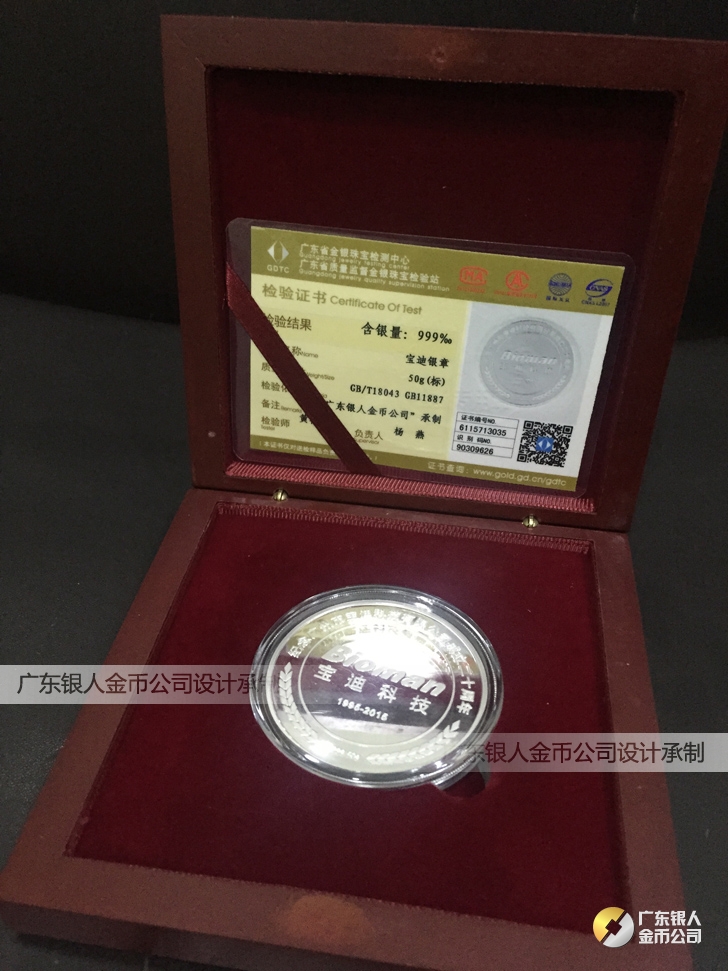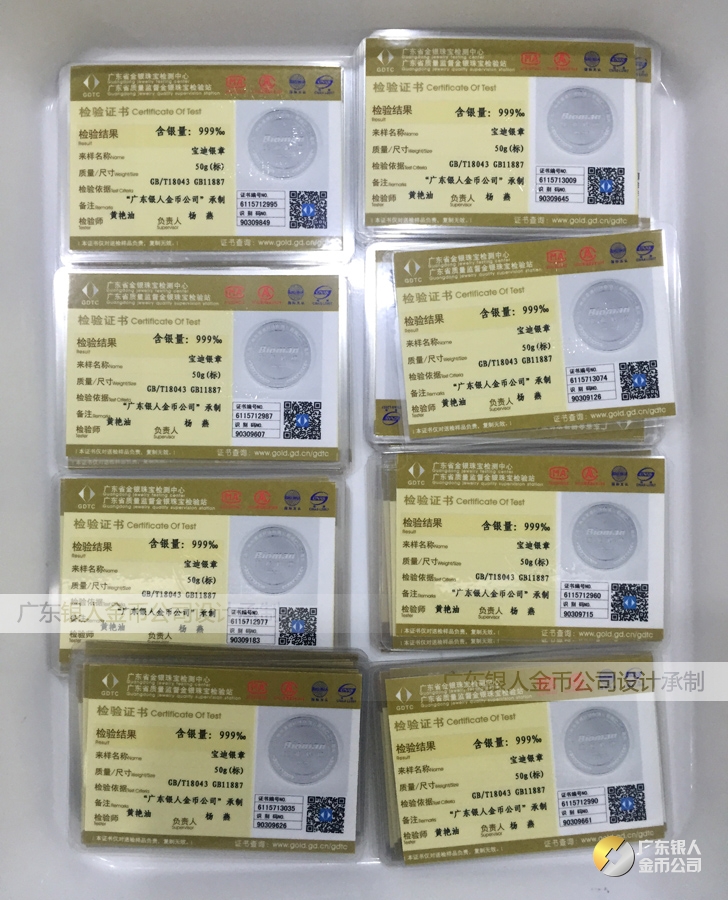 廣東銀人金幣公司承接客戶個(gè)性化定制的金銀幣、金銀章、金銀條、金銀牌、金銀盤均由國家質(zhì)監(jiān)部門、嚴(yán)格檢測、權(quán)威鑒定: