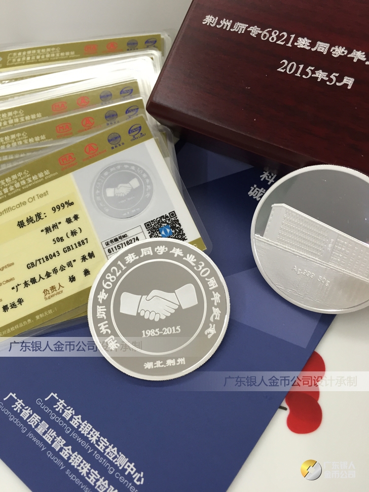 廣東銀人金幣公司承接客戶個性化定制的金銀幣、金銀章、金銀條、金銀牌、金銀盤均由國家質監部門、嚴格檢測、權威鑒定: