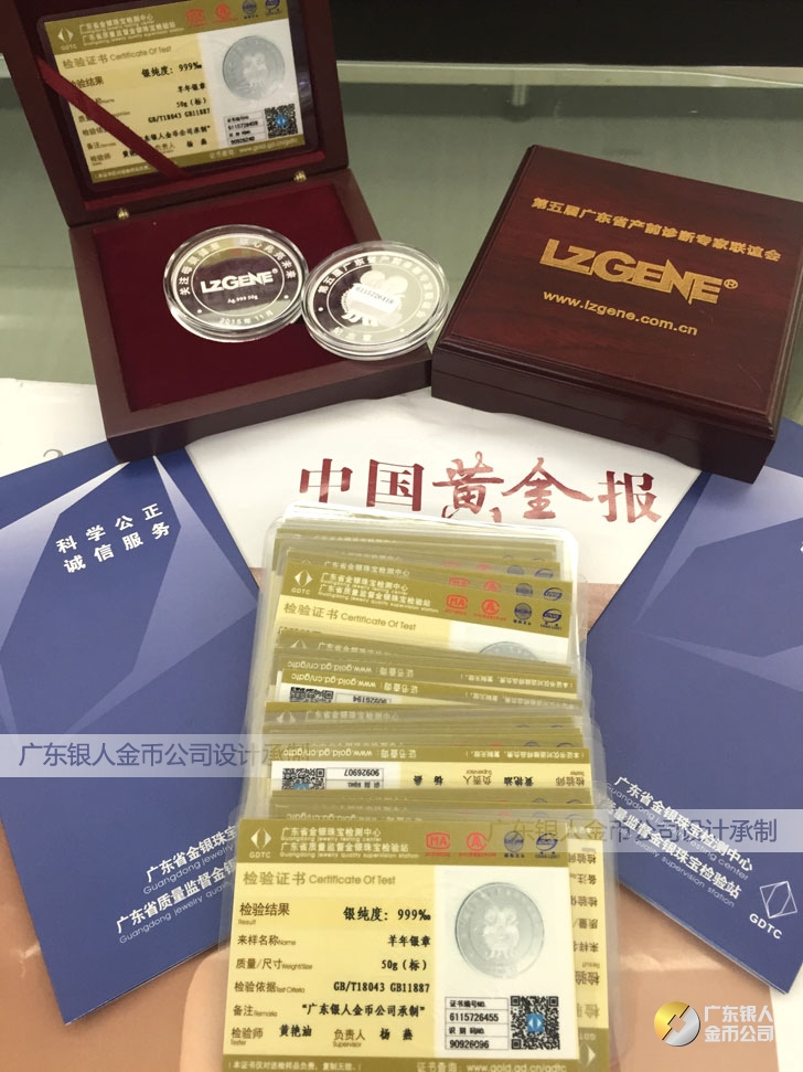 廣東銀人金幣公司承接客戶個性化定制的金銀幣、金銀章、金銀條、金銀牌、金銀盤均由國家質監部門、嚴格檢測、權威鑒定: