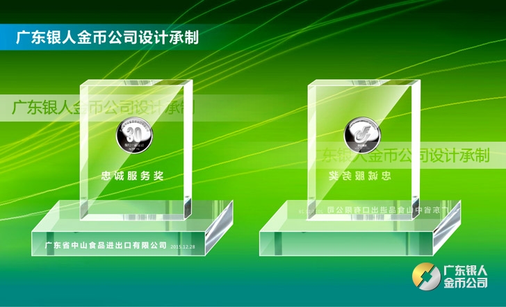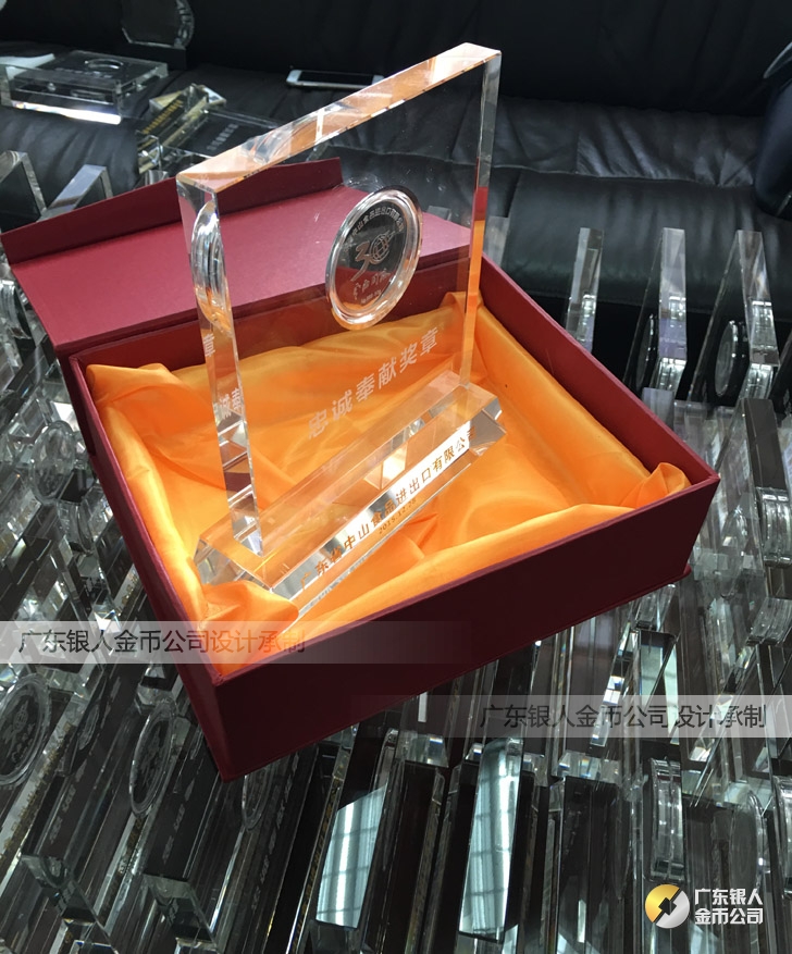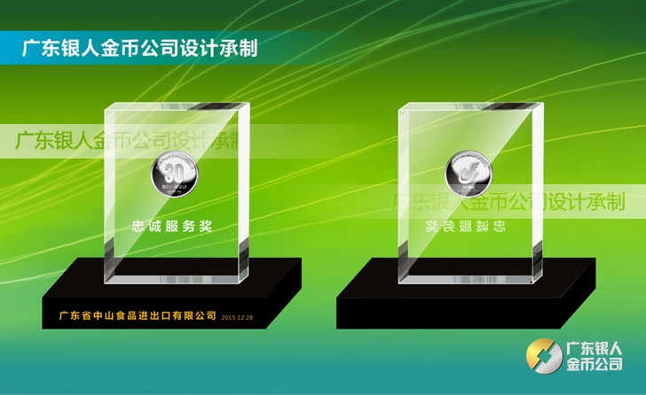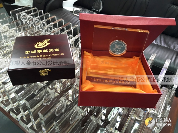 2015年11月定制 中山食品進出口公司水晶擺件鑲純銀銀幣定制