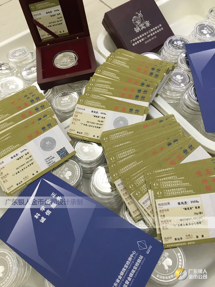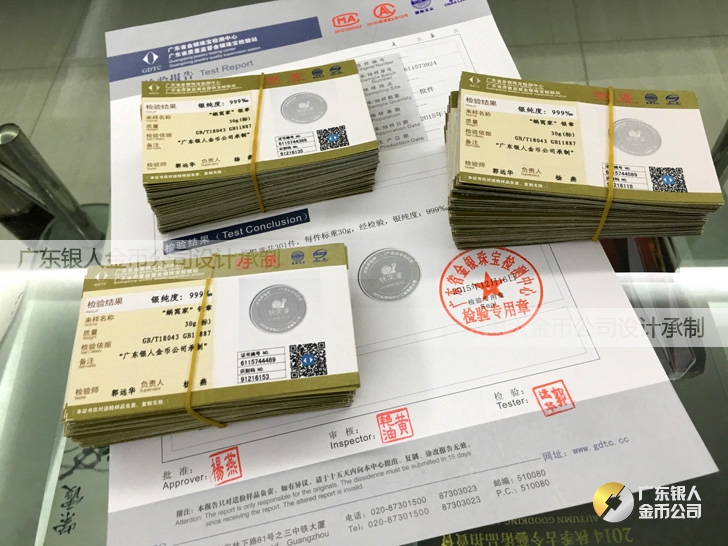 廣東銀人金幣公司承接客戶個性化定制的金銀幣、金銀章、金銀條、金銀牌、金銀盤均由國家質監部門、嚴格檢測、權威鑒定: