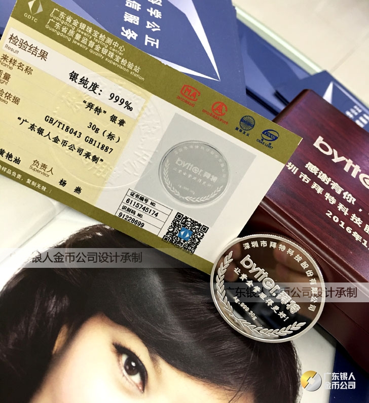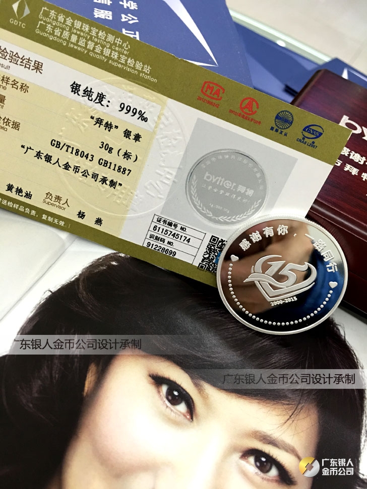廣東銀人金幣公司承接客戶個性化定制的金銀幣、金銀章、金銀條、金銀牌、金銀盤均由國家質監部門、嚴格檢測、權威鑒定: