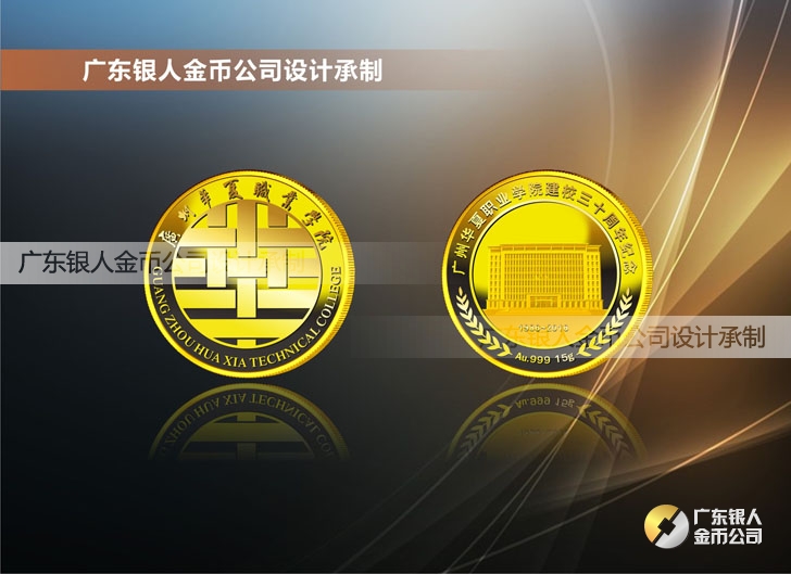2016年4月定制 廣州華夏職業學院建校30周年金銀章定制