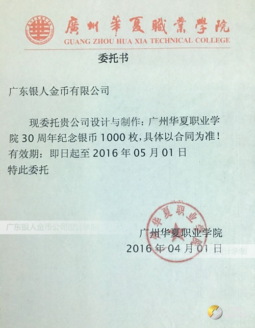 2016年4月定制 廣州華夏職業學院校慶30周年紀念銀幣定制