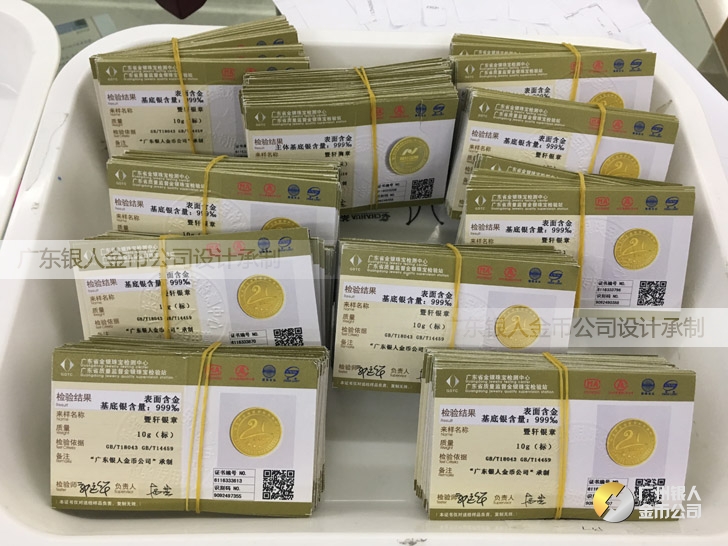 廣東銀人金幣公司承接客戶個性化定制的金銀幣、金銀章、金銀條、金銀牌、金銀盤均由國家質監部門、嚴格檢測、權威鑒定: