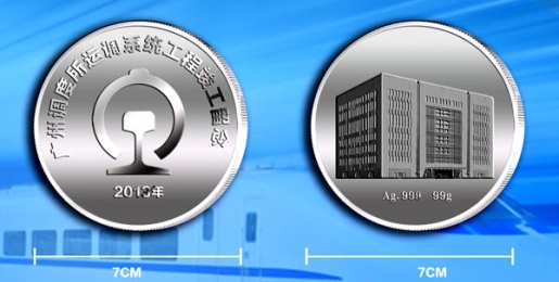 2013年4月廣鐵集團廣州調度所運調系統工程竣工紀念幣定做