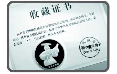 紀(jì)念幣附帶的收藏證書(shū)