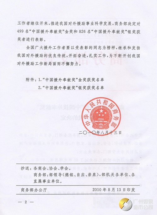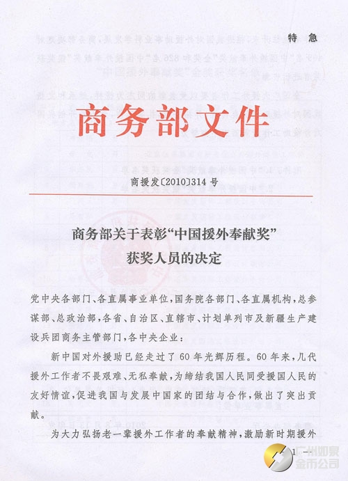 中 國 援 外 奉 獻(xiàn) 獎(jiǎng)