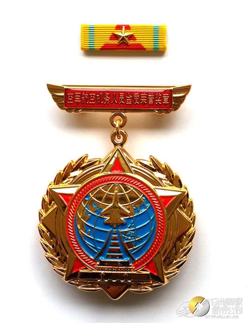 空軍功勛飛行人員金質榮譽獎章,主要授予獲得一等功以上獎勵的飛行人員;空軍飛行人員金(銀)質榮譽獎章,主要授予因連續安全飛行榮立二等功后再次榮立二(三)等功的飛行人員;空軍飛行人員銅質榮譽獎章,主要授予因連續安全飛行首次榮立二等功的飛行人員。圖為飛行金質獎章實物。