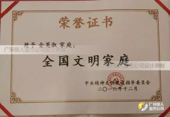 “全國文明家庭”獎牌、獎章和榮譽證書(圖)