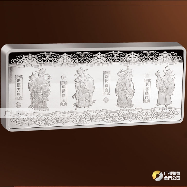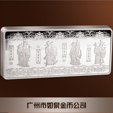 廣州市如泉金幣公司依托上海造幣廠和深圳國寶造幣廠等造幣公司以及金銀制品廠,設計定做紀念幣、紀念章、金銀幣、金銀章、金銀條,采用造幣工藝、選用千足金銀,個性定制金幣、定做銀幣、訂做金條、訂制銀條、制作紀念銀幣、制造紀念金幣、加工紀念銀章、生產紀念金章,純金純銀鑄造、全部國檢、權威檢測。