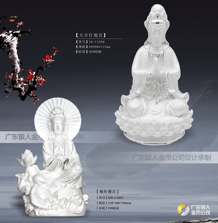純銀觀音菩薩擺件、觀音純銀擺件